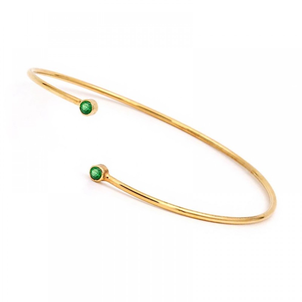 Ασημένιο με επιχρύσωση 18Κ σταθερό βραχιόλι με πράσινες πέτρες