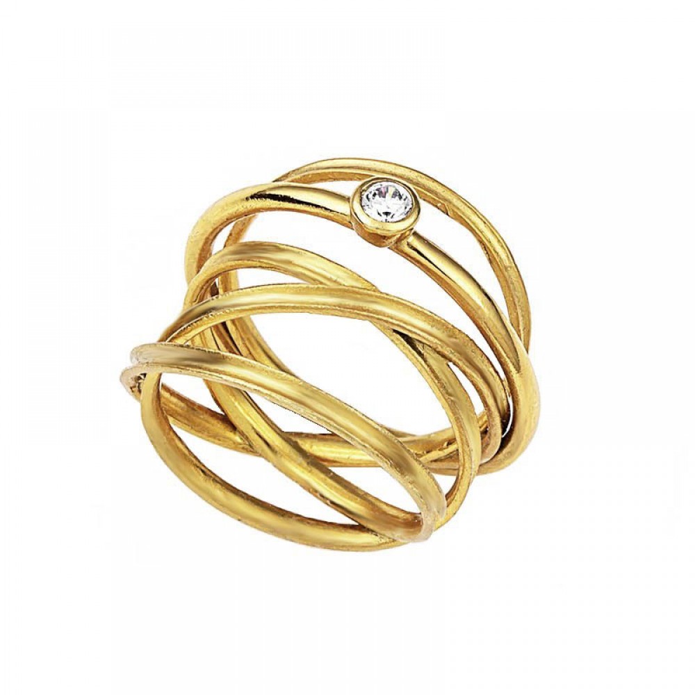 Ασημένιο με επιχρύσωση 18Κ χειροποίητο δαχτυλίδι με πέτρα ζιργκόν