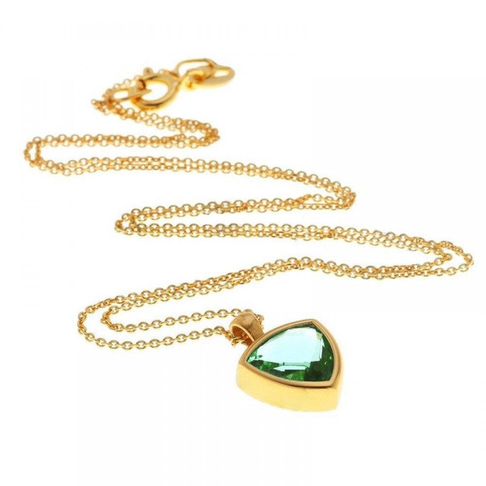 Ασημένιο επίχρυσο κολιέ με πράσινη πέτρα ζιργκόν σε τριγωνικό σχήμα