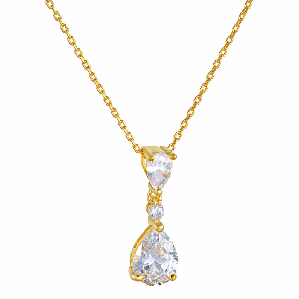 Ασημένιο και επιχρυσωμένο κολιέ με πέτρες ζιργκόν σε σχήμα σταγόνας
