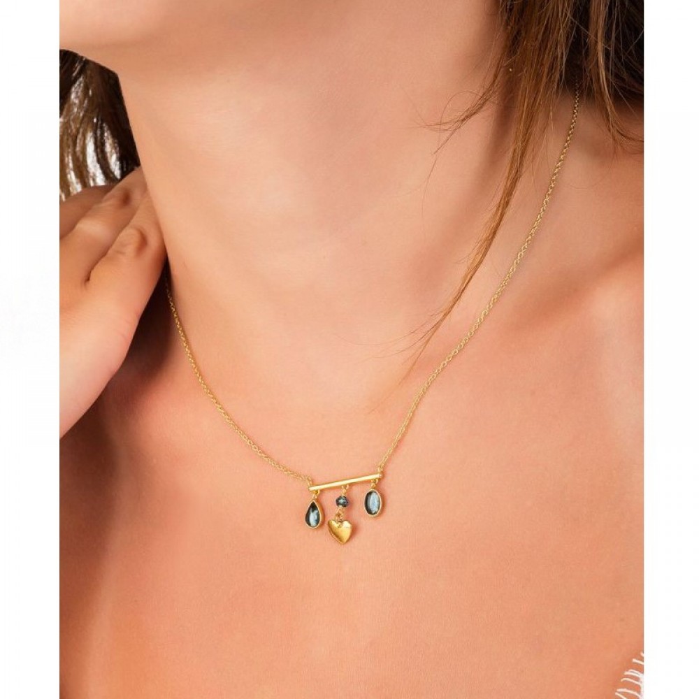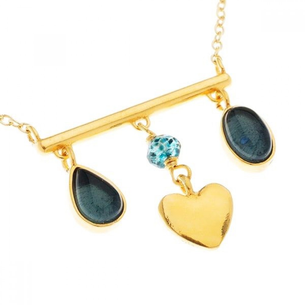 Κολιέ με καρδιά και μπλε κρύσταλλα