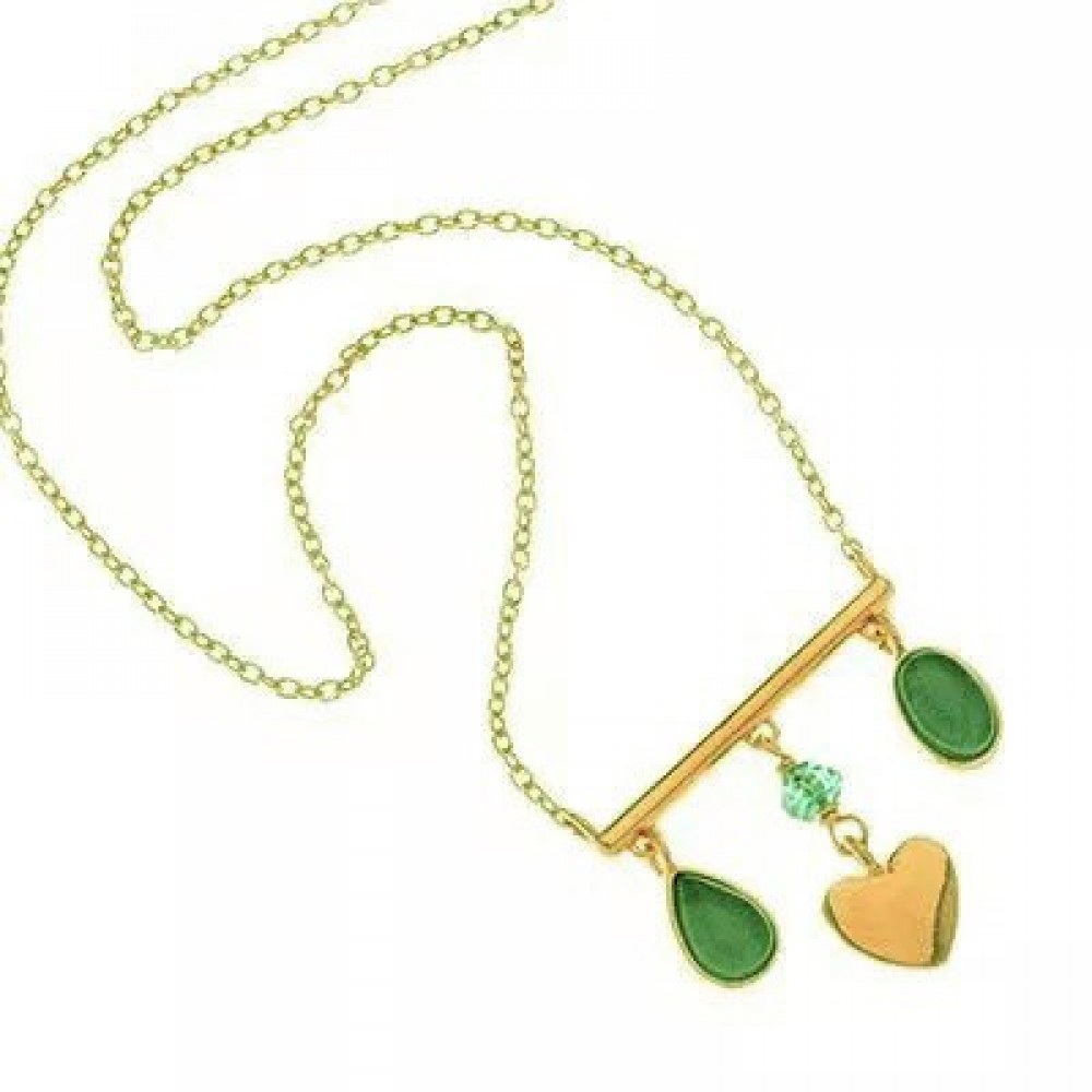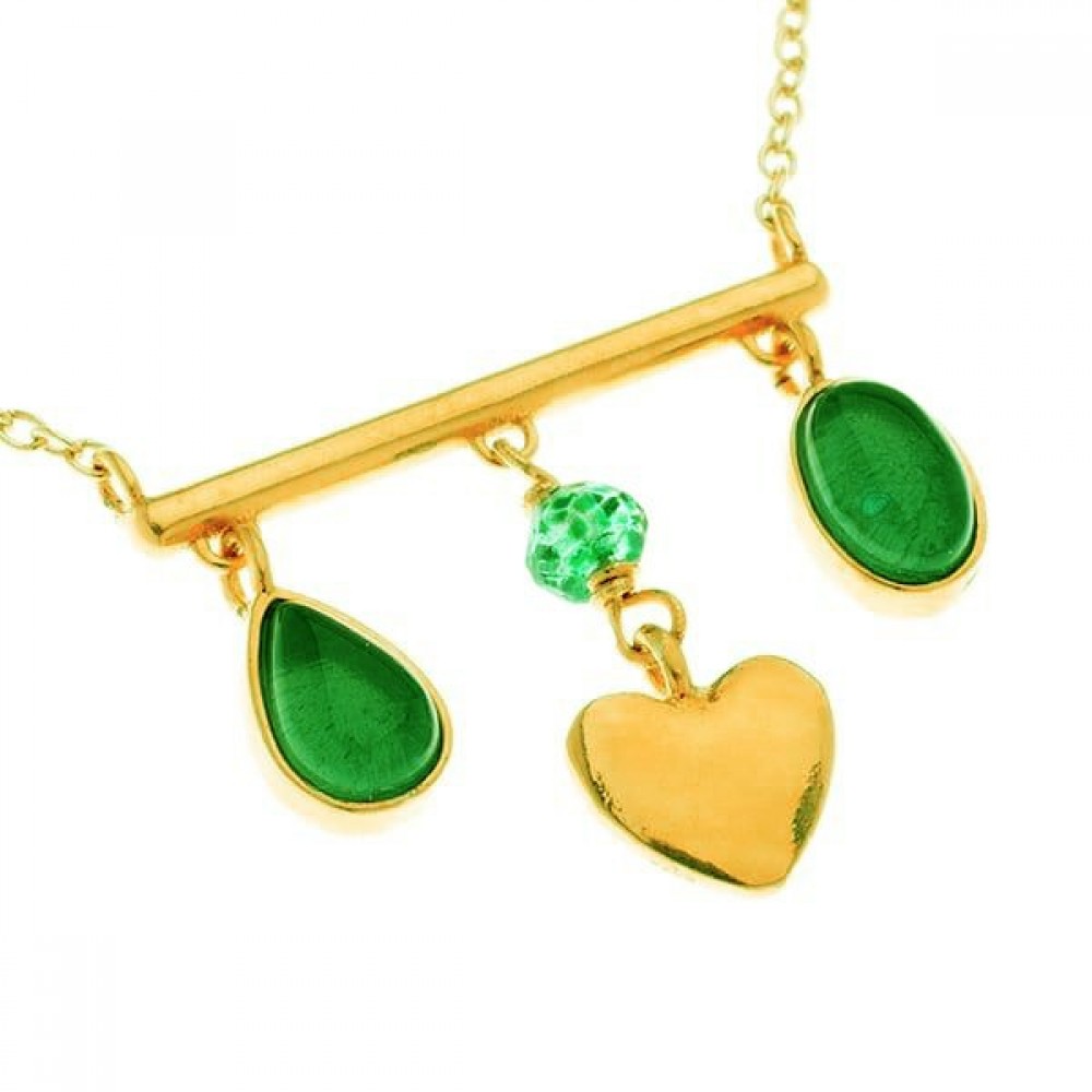 Κολιέ με καρδιά και πράσινα κρύσταλλα