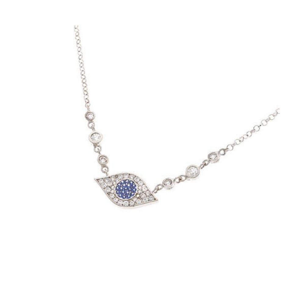 Ασημένιο κολιέ με μάτι και πέτρες στην αλυσίδα.