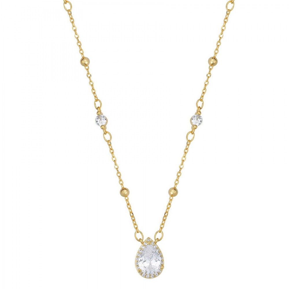 Ασημένιο επίχρυσο κολιέ με πέτρα σε σχήμα δάκρυ και διακοσμητικές λεπτομέρειες στην αλυσίδα