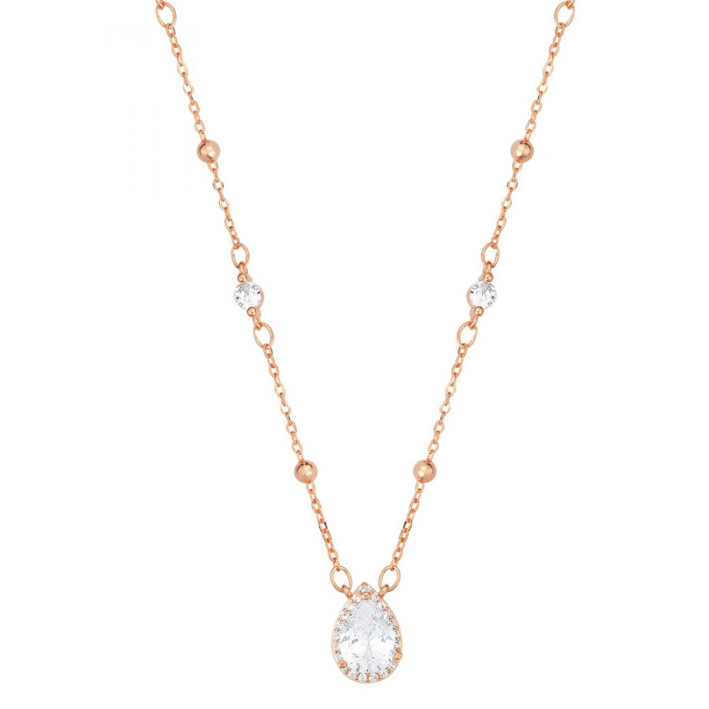 Ασημένιο με επιχρύσωση ροζ χρυσού κολιέ με πέτρα σε σχήμα δάκρυ και διακοσμητικές λεπτομέρειες στην αλυσίδα