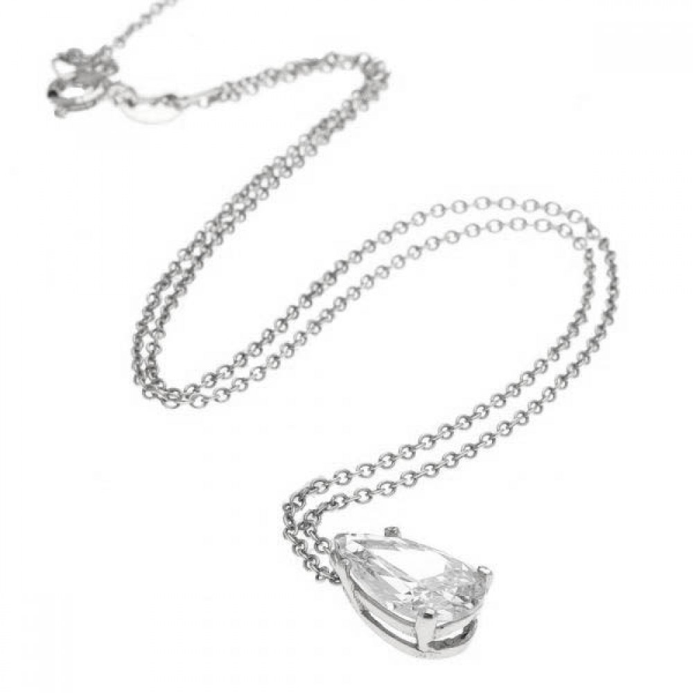 Ασημένιο κολιέ (μονόπετρο) με πέτρα ζιργκόν σε σχήμα σταγόνας