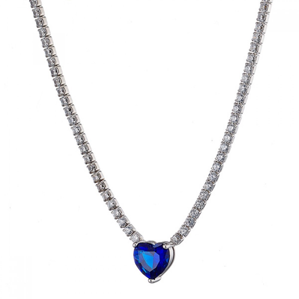 Ασημένιο κολιέ - ριβιέρα με μπλε κάρδια στο κέντρο
