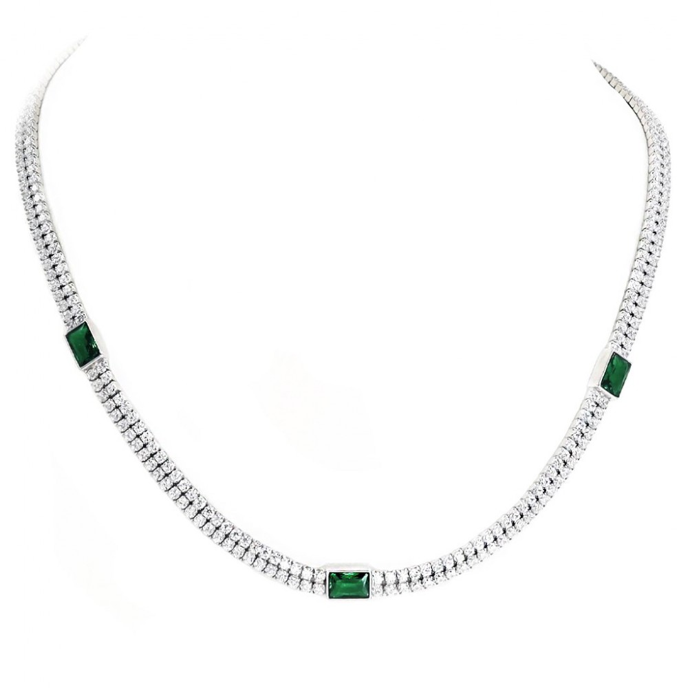 Ασημένιο εντυπωσιακό κολιέ-τσόκερ με λευκές και πράσινες πέτρες ζιργκόν