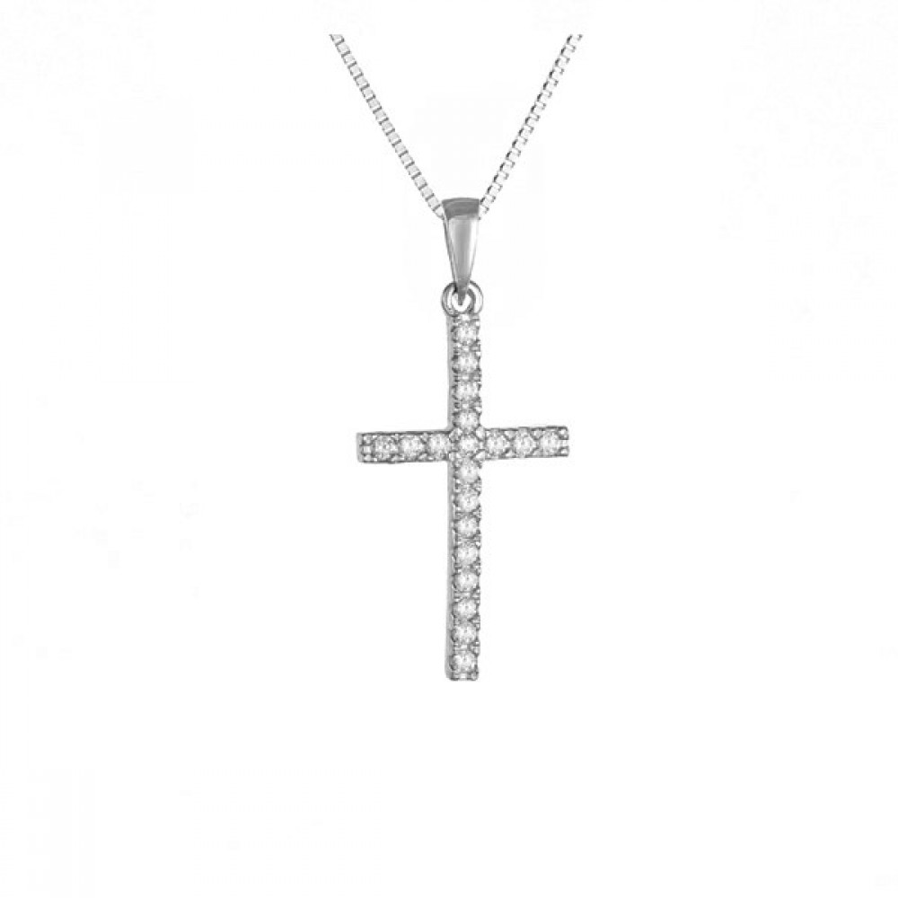 Κολιέ με λεπτό σταυρό και πέτρες ζιργκόν