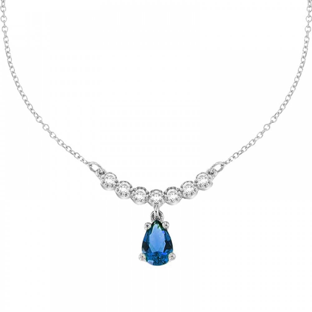 Κομψό κολιέ με πέτρες ζιργκόν σε λευκό χρώμα στη βάση της αλυσίδας και μπλε πέτρα ζιργκόν σε σχήμα σταγόνας