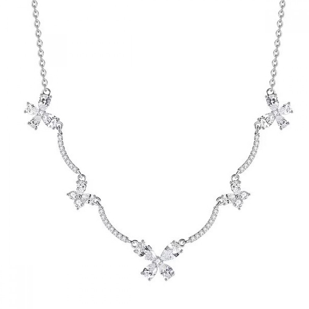 Κολιέ με πεταλούδες διακοσμημένο με πέτρες ζιργκόν σε λευκό χρώμα