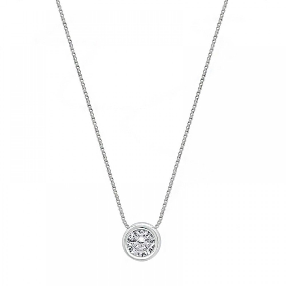 Κολιέ μονόπετρο με πέτρα ζιργκόν σε λευκό χρώμα