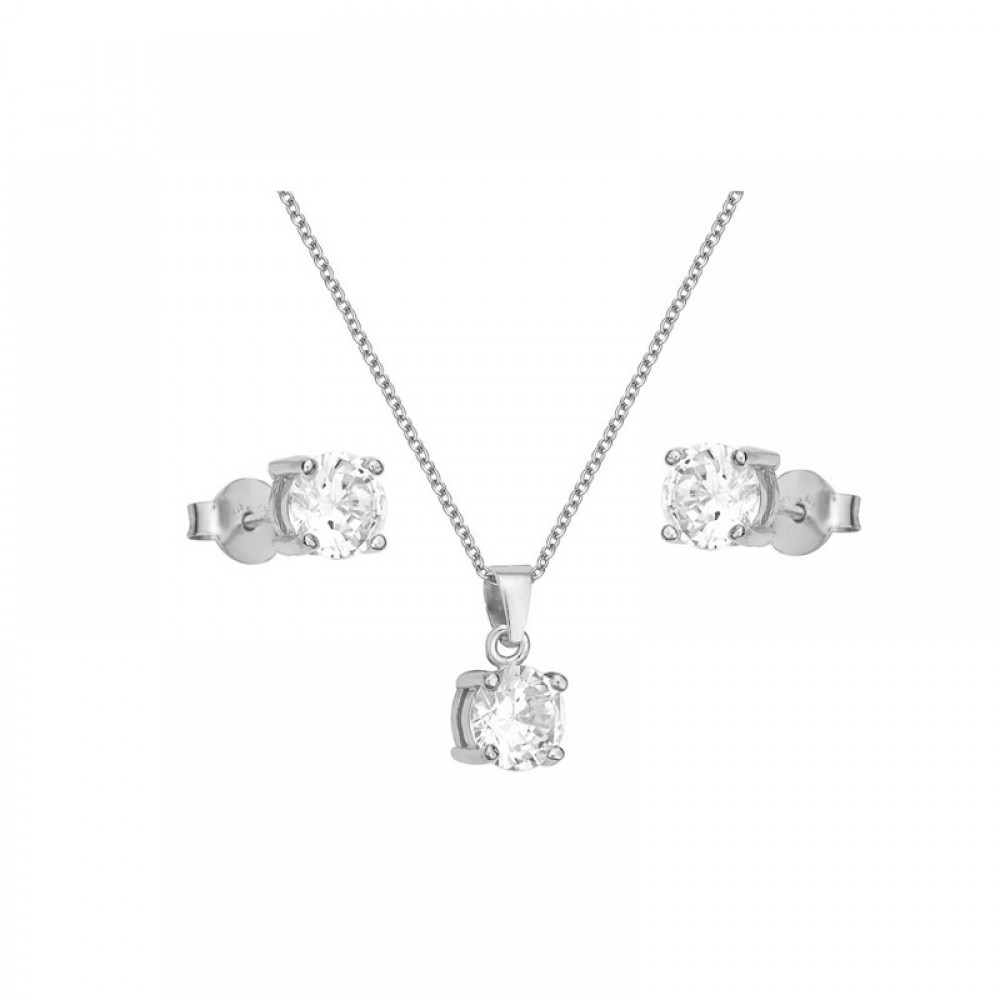 Ασημένιο μονόπετρο σετ (κολιέ σκουλαρίκια) με πέτρες ζιργκόν