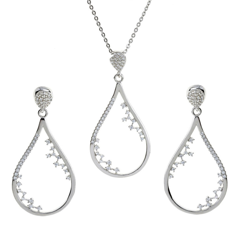 Ασημένιο εντυπωσιακό σετ (κολιέ - σκουλαρίκια) με λευκές πέτρες ζιργκόν