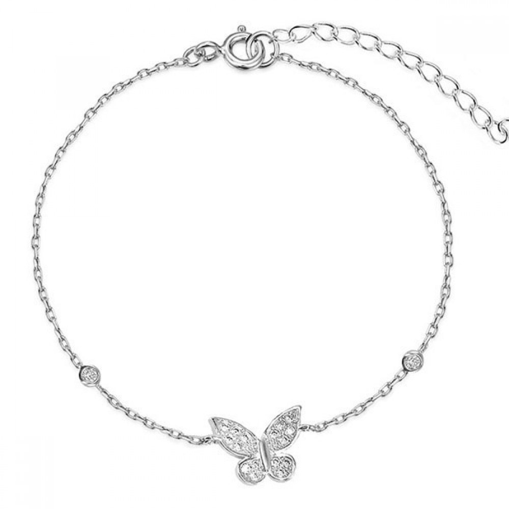 Ασημένιο βραχιόλι με πεταλούδα διακοσμημένη με πέτρες ζιργκόν σε λευκό χρώμα