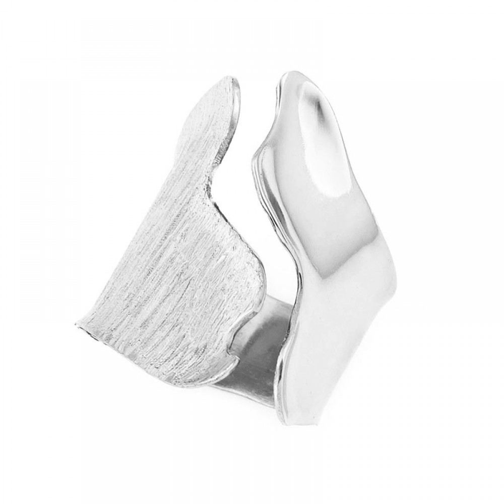 Ασημένιο χειροποίητο δαχτυλίδι με ματ και λουστρέ επιφάνεια