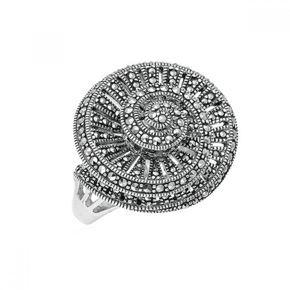 Ασημένιο δαχτυλίδι με μεγάλο κοχύλι και πέτρες μαρκασίτη