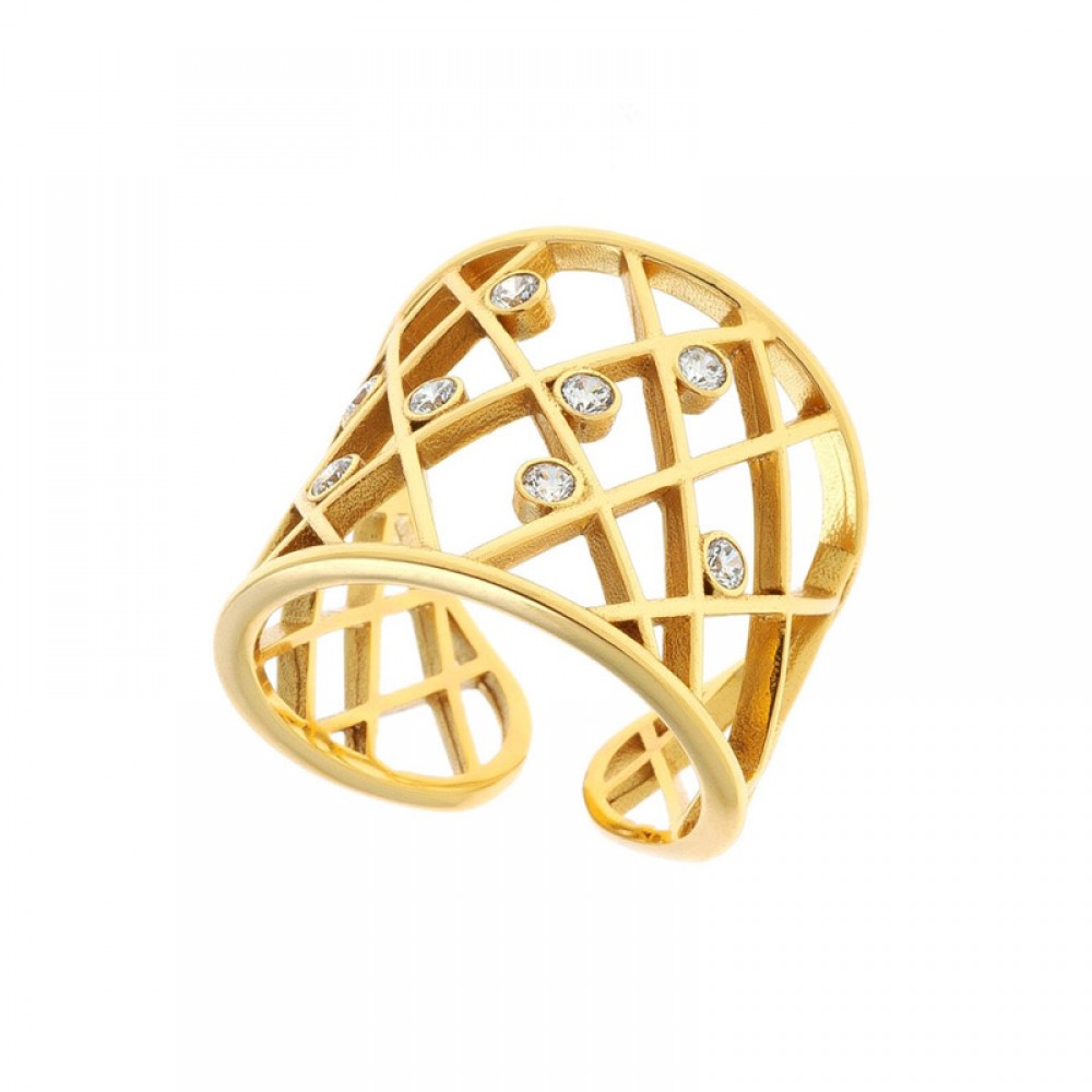 Ασημένιο και επιχρυσωμένο χειροποίητο δαχτυλίδι με λευκές πέτρες ζιργκόν