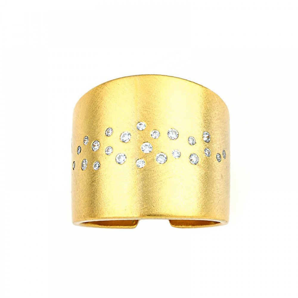 Ασημένιο και επιχρυσωμένο δαχτυλίδι με λευκές πέτρες ζιργκόν