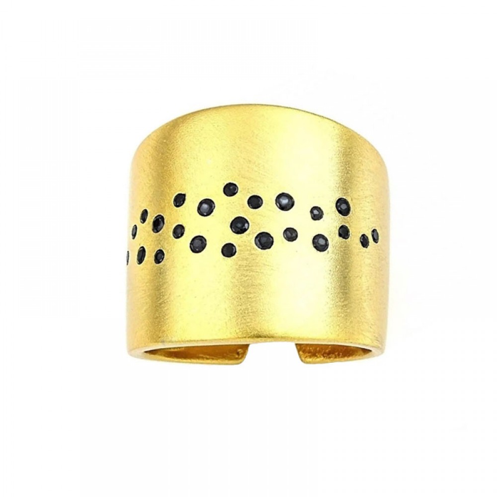 Ασημένιο και επιχρυσωμένο χειροποίητο δαχτυλίδι με πέτρες ζιργκόν σε μαύρο χρώμα