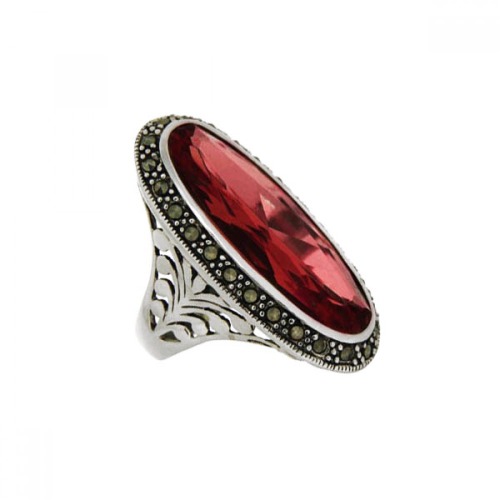 Ασημένιο εντυπωσιακό δαχτυλίδι με μεγάλη κόκκινη πέτρα