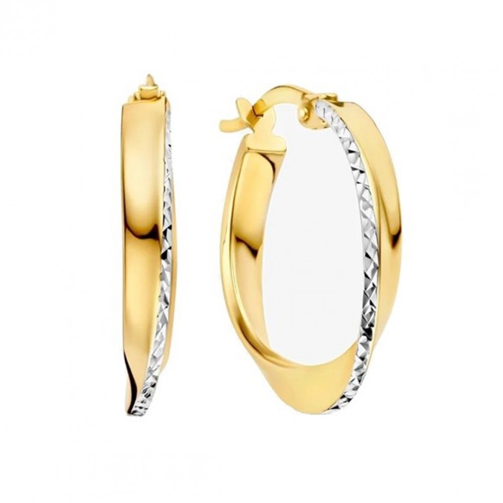 Ασημένιοι και επιχρυσωμένοι κρίκοι με οβάλ σχήμα και διαμανταρισμένο σκάλισμα