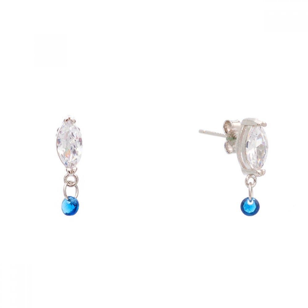 Μικρά κουμπωτά σκουλαρίκια με μικρή κρεμαστή μπλε πέτρα