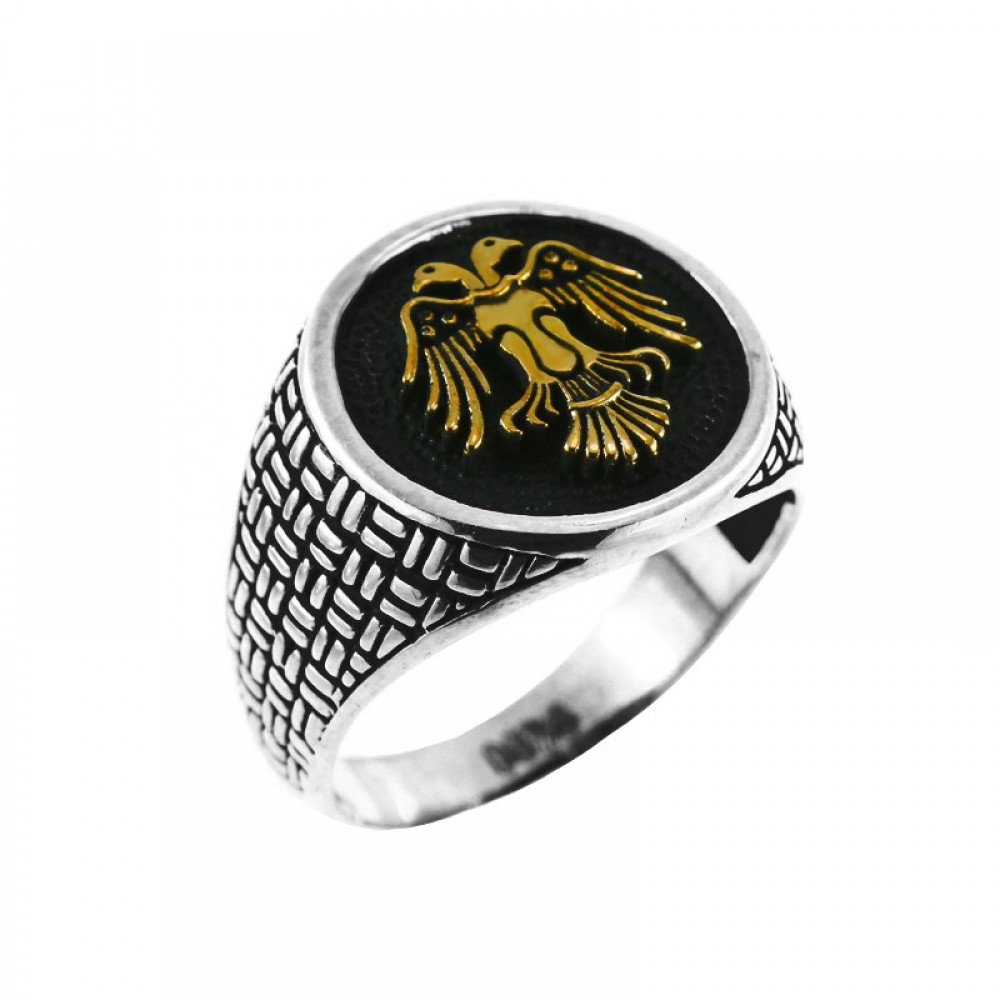 Χειροποίητο ανδρικό δαχτυλίδι με ανάγλυφο σκάλισμα με δικέφαλο αετό