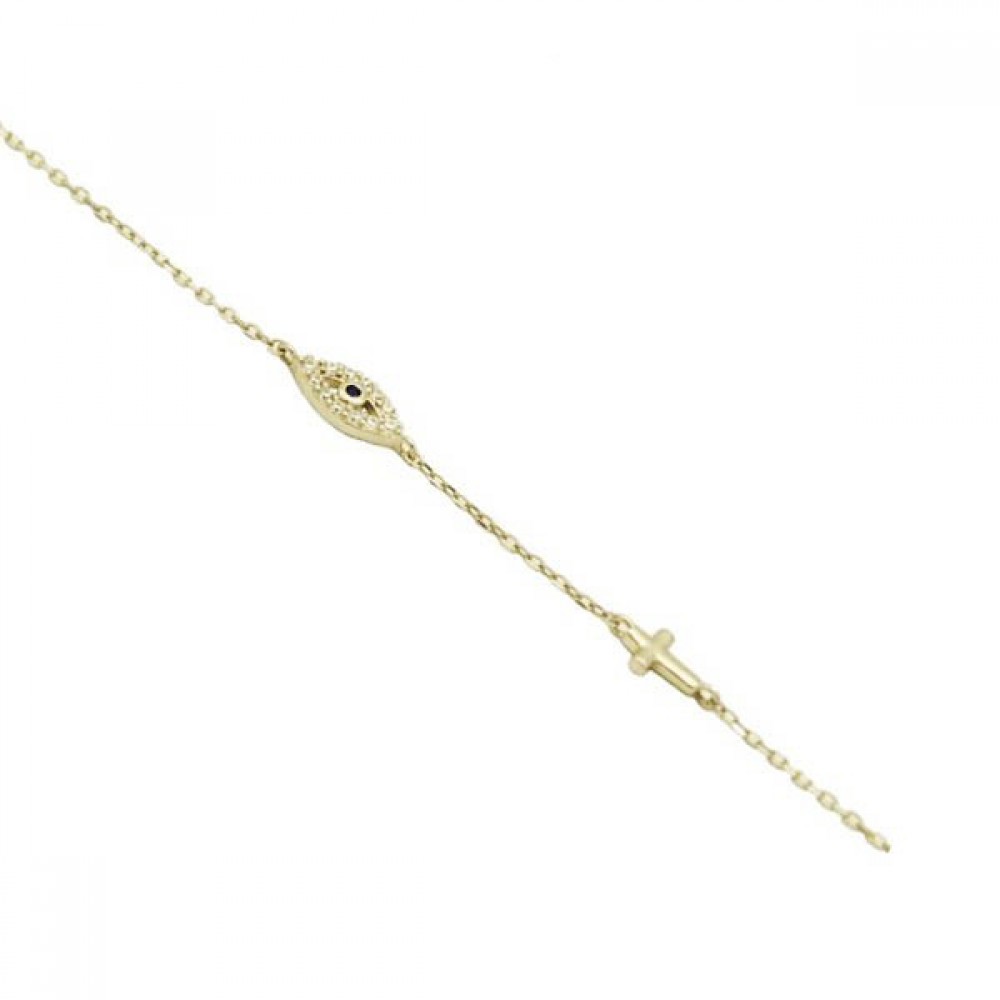 Ασημένιο και επιχρυσωμένο βραχιόλι με μικρό μάτι και σταυρό