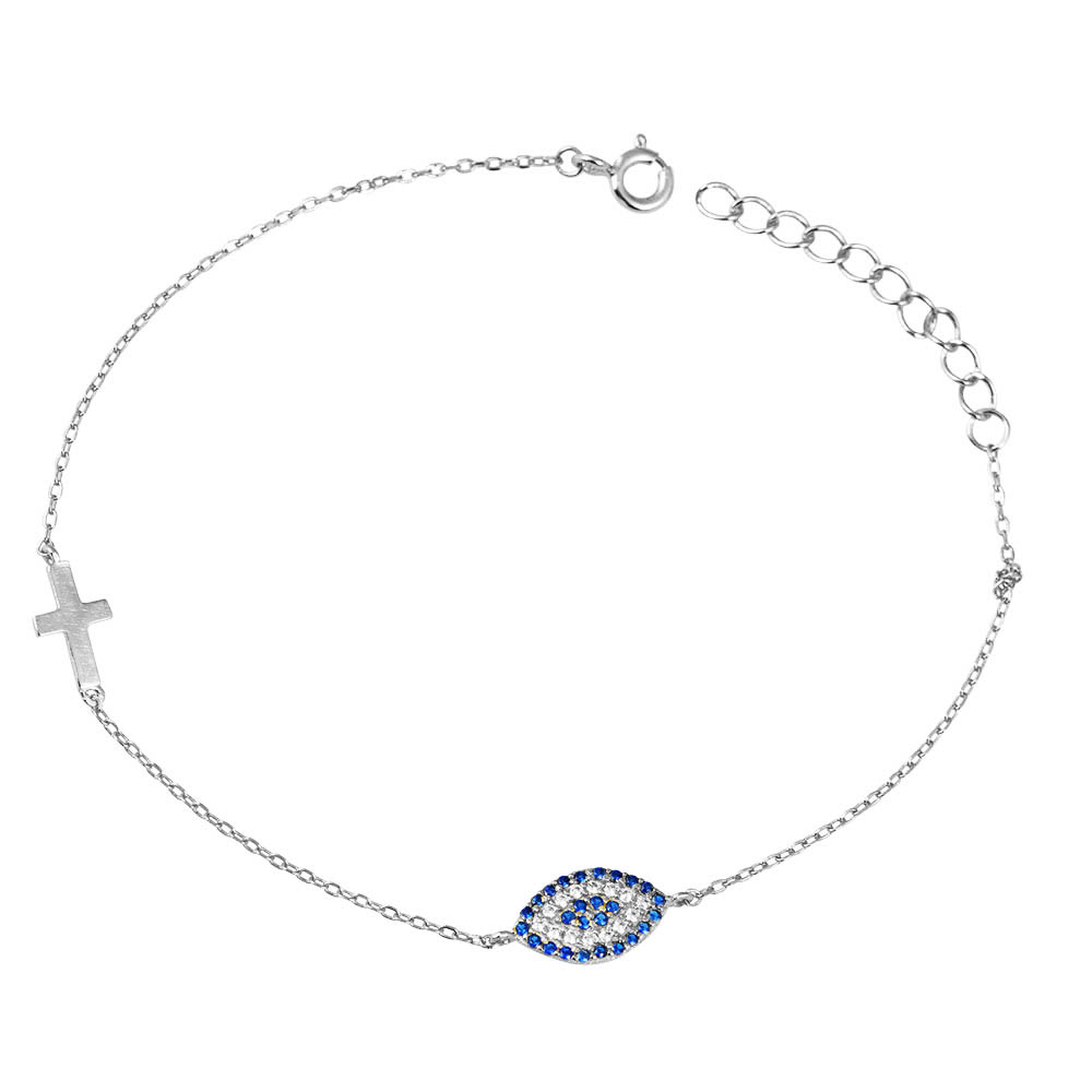 Ασημένιο βραχιόλι με μάτι και σταυρό.