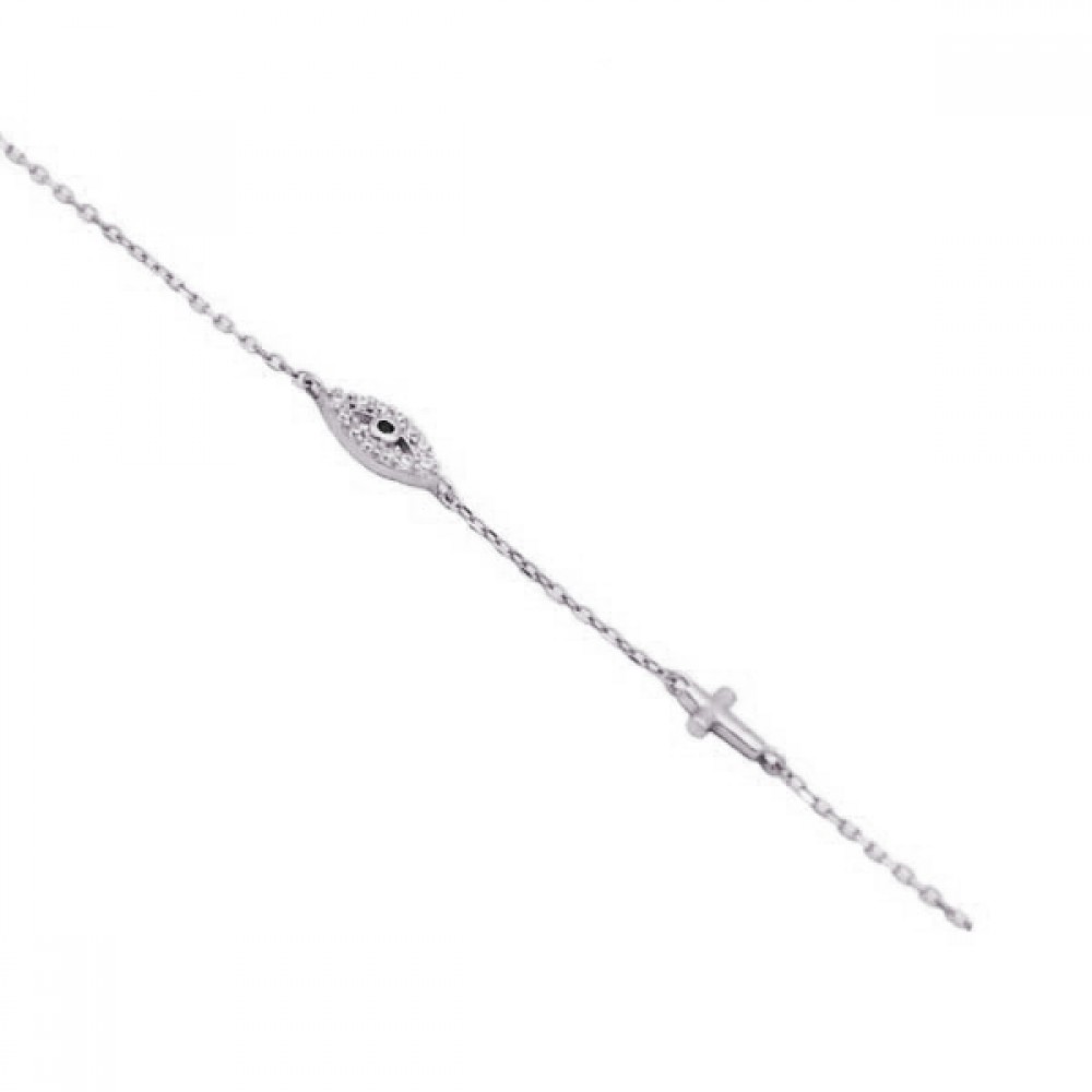 Ασημένιο βραχιόλι με μικρό μάτι και σταυρό
