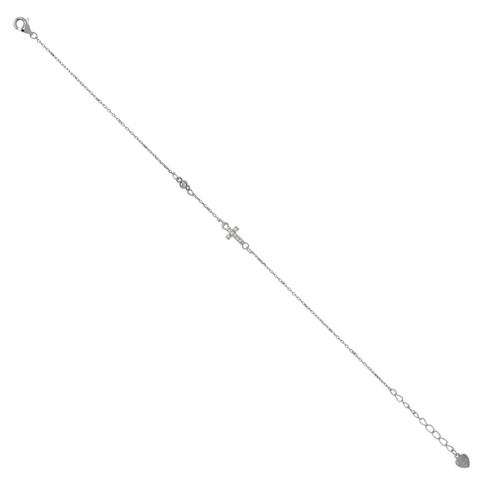 Ασημένιο βραχιόλι με μικρό σταυρό και πέτρα ζιργκόν.