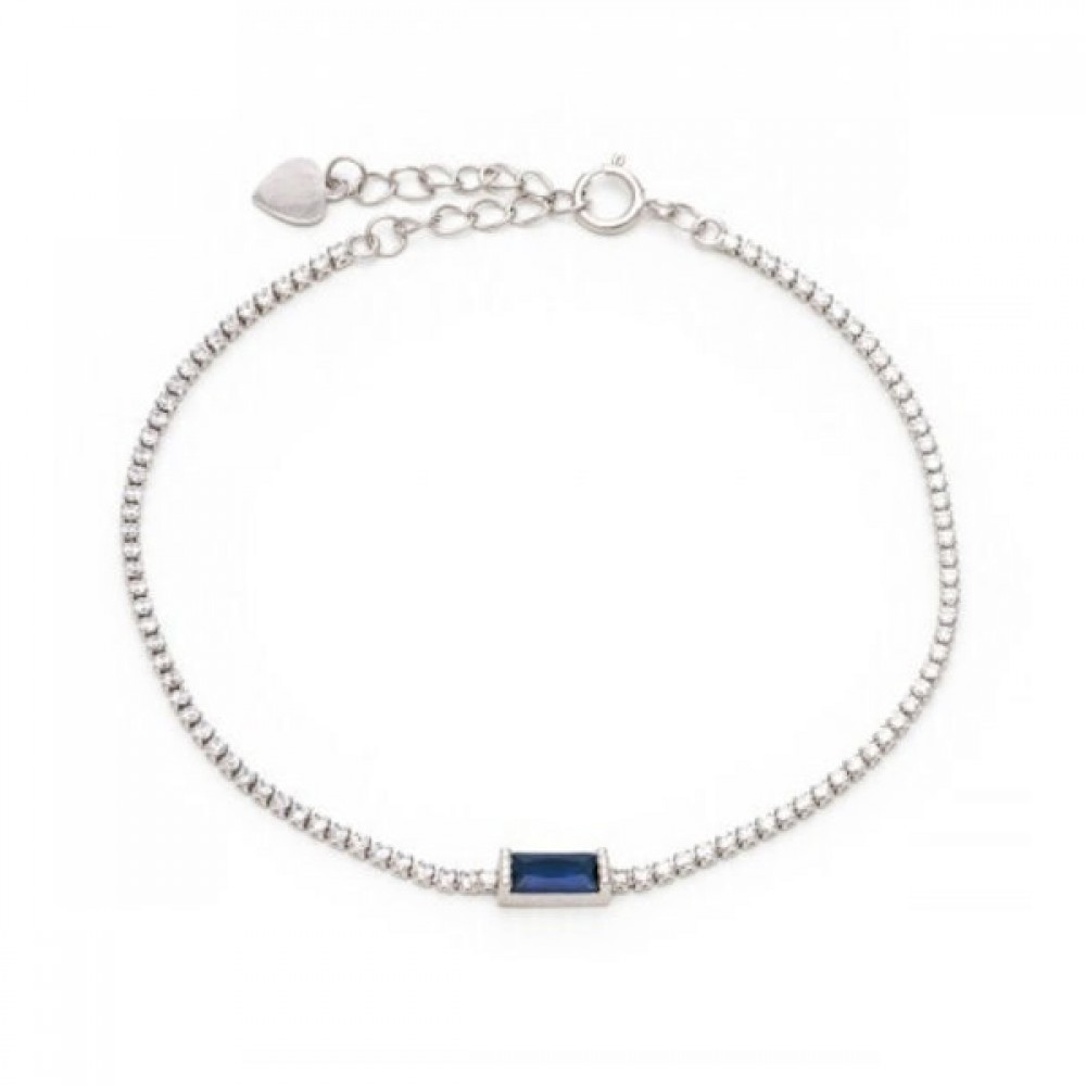 Ασημένιο βραχιόλι ριβιέρα με με μπλε πέτρα ζιργκόν στο κέντρο