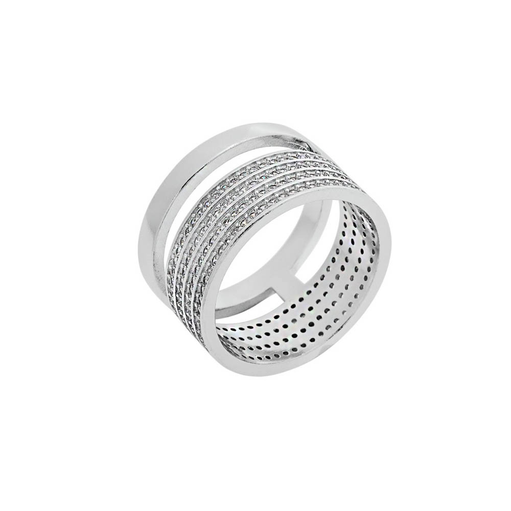 Φαρδύ δαχτυλίδι με τέσσερις σειρές λευκές πέτρες ζιργκόν.