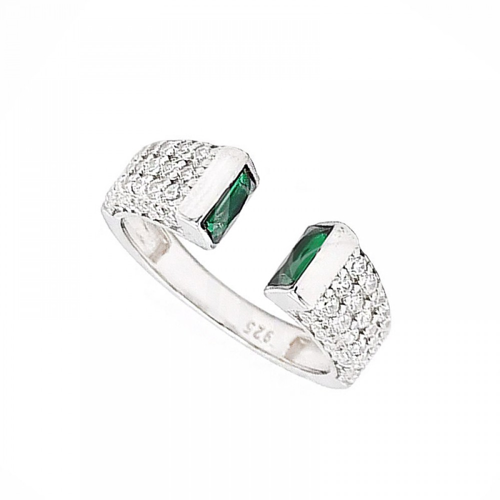 Ασημένιο δαχτυλίδι για το μικρό δάχτυλο με πράσινες πέτρες