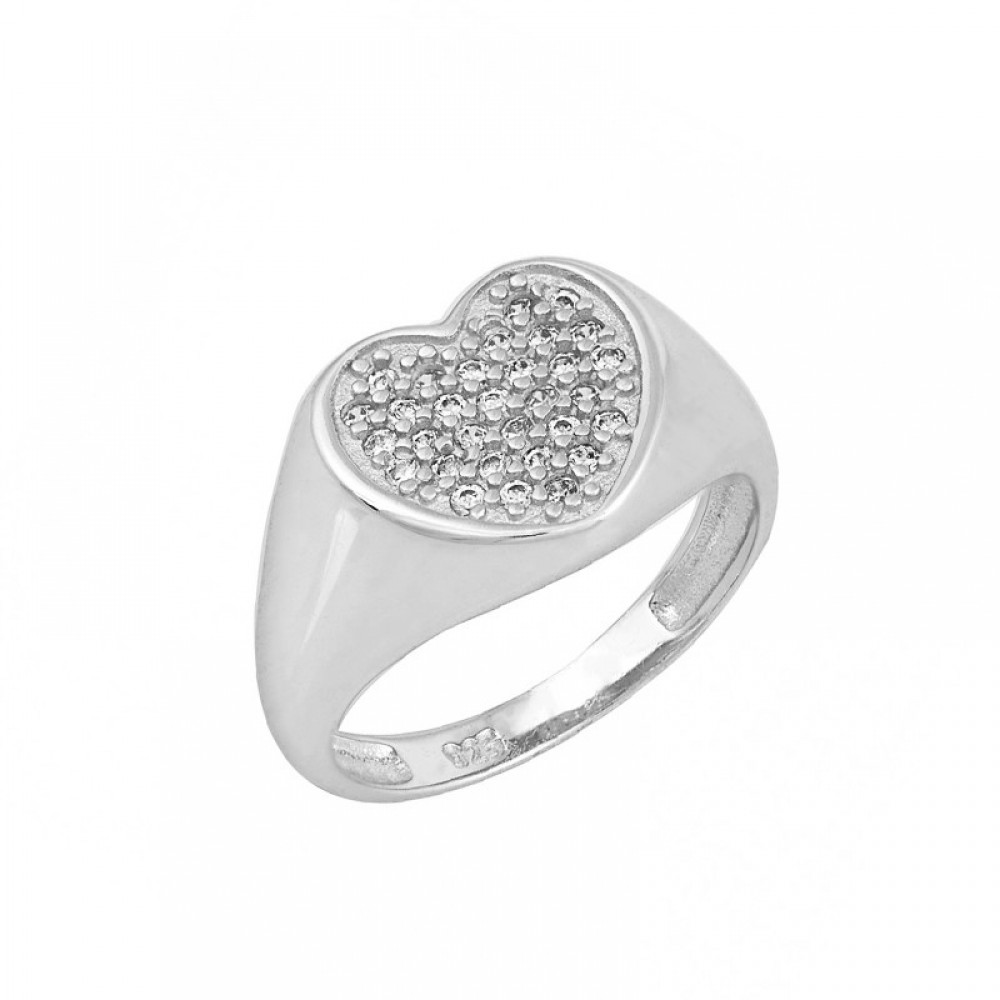 Ασημένιο δαχτυλίδι για το μικρό δάχτυλο (chevalier) με σχήμα καρδιά