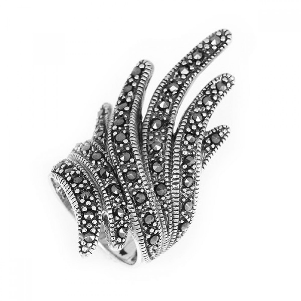 Ασημένιο εντυπωσιακό δαχτυλίδι διακοσμημένο με πέτρες μαρκασίτη