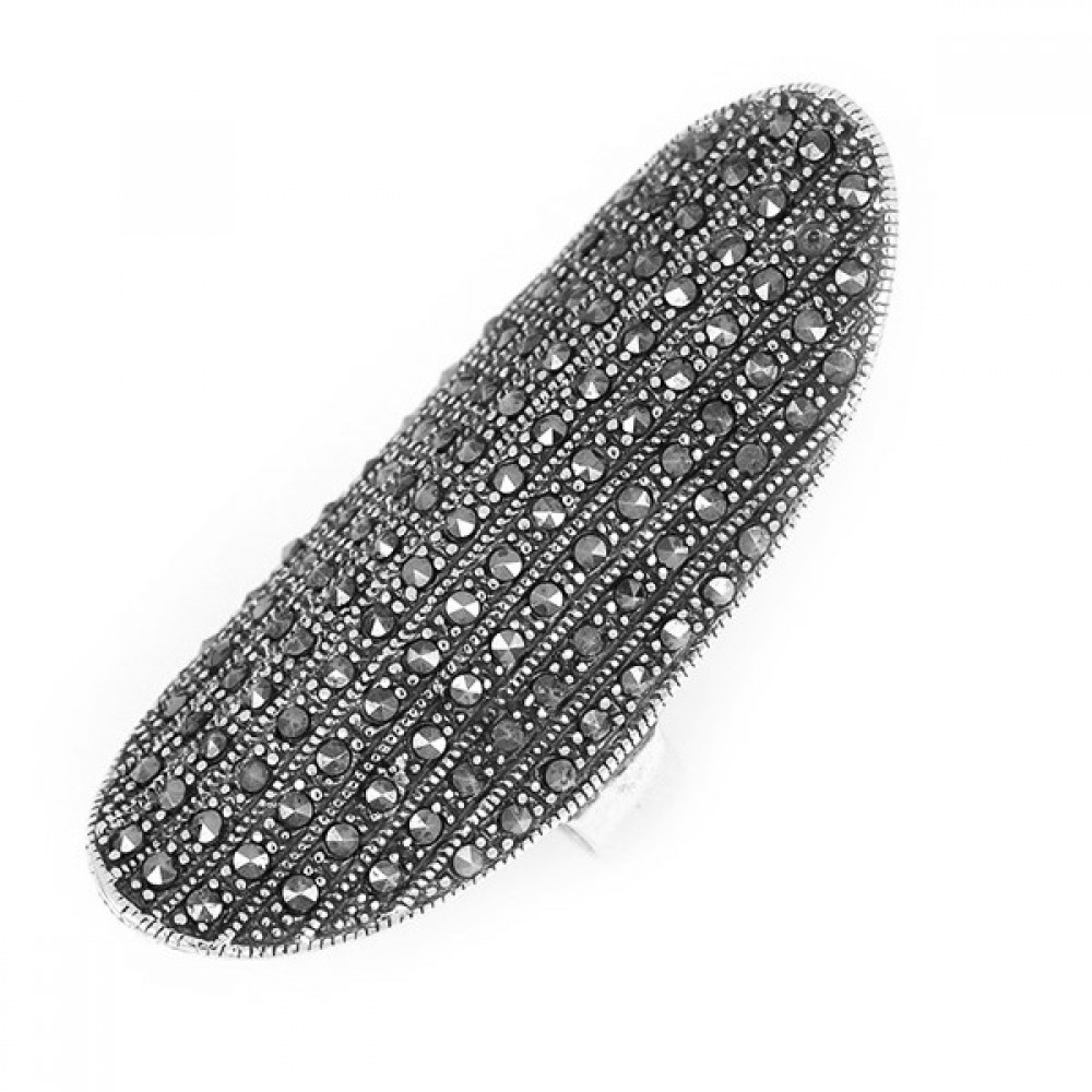 Ασημένιο μεγάλο δαχτυλίδι διακοσμημένο με πέτρες μαρκασίτη