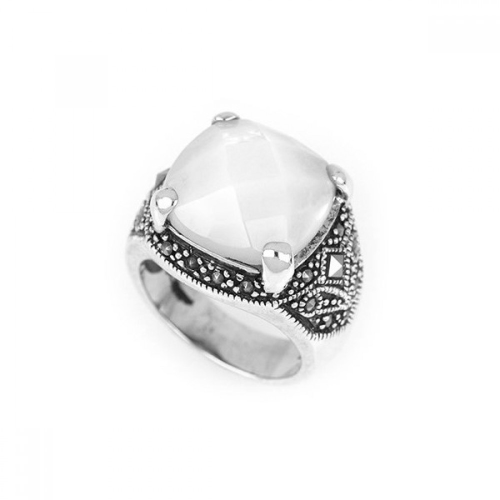 Ασημένιο δαχτυλίδι με πέτρα φίλντισι και μικρές πέτρες μαρκασίτη