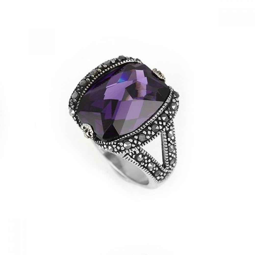 Ασημένιο δαχτυλίδι με πέτρες ζιργκόν-αμέθυστος και μαρκασίτης