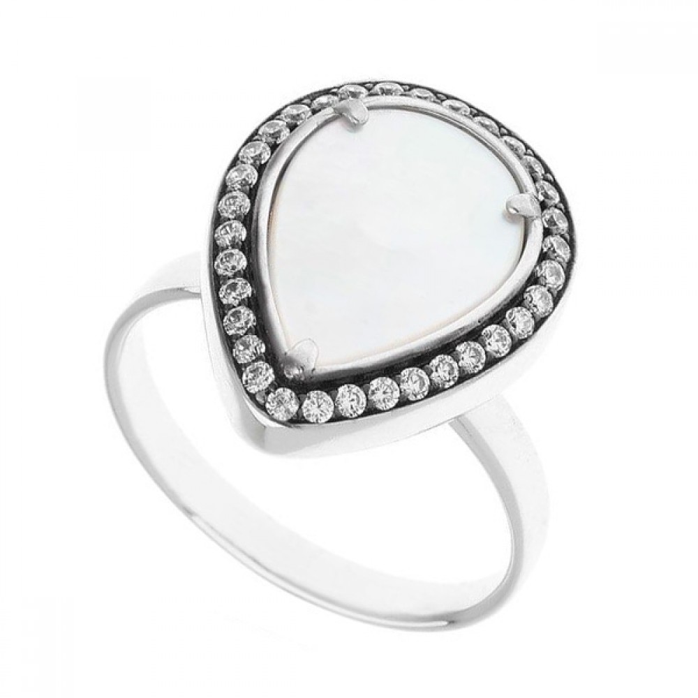 Δαχτυλίδι με πέτρα φίλντισι σε σχήμα σταγόνας και λευκές πέτρες ζιργκόν περιμετρικά
