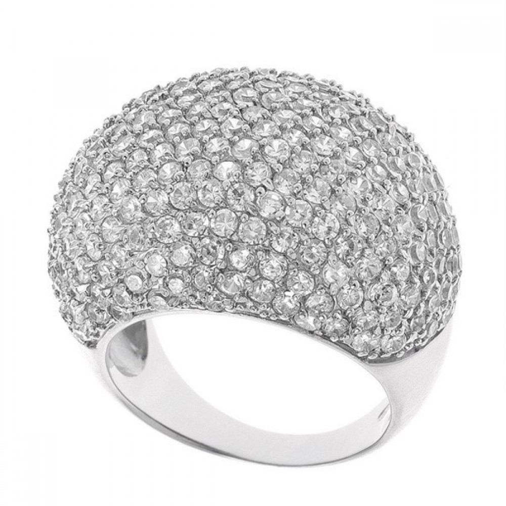 Ασημένιο εντυπωσιακό δαχτυλίδι με πέτρες ζιργκόν σε λευκό χρώμα