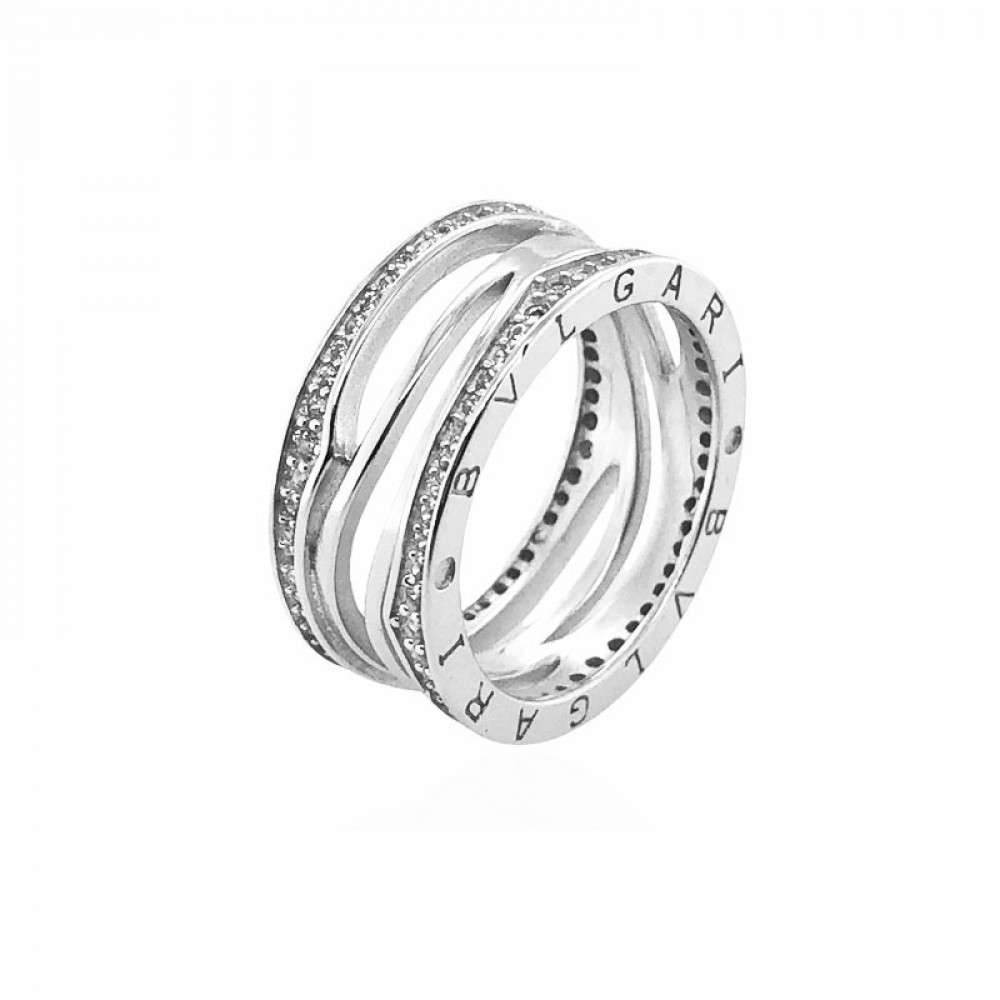 Ασημένιο φαρδύ δαχτυλίδι τύπου Bvlgari με πέτρες ζιργκόν