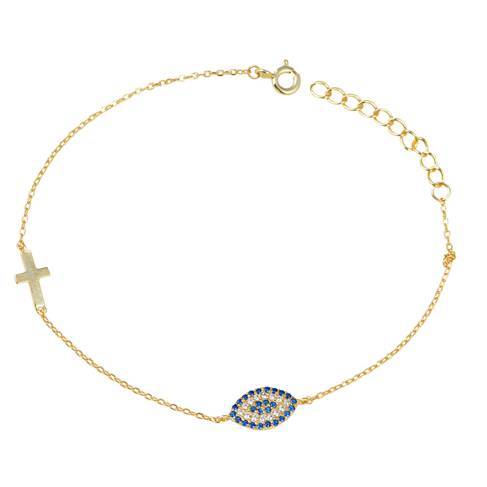Ασημένιο βραχιόλι με μάτι και σταυρό.