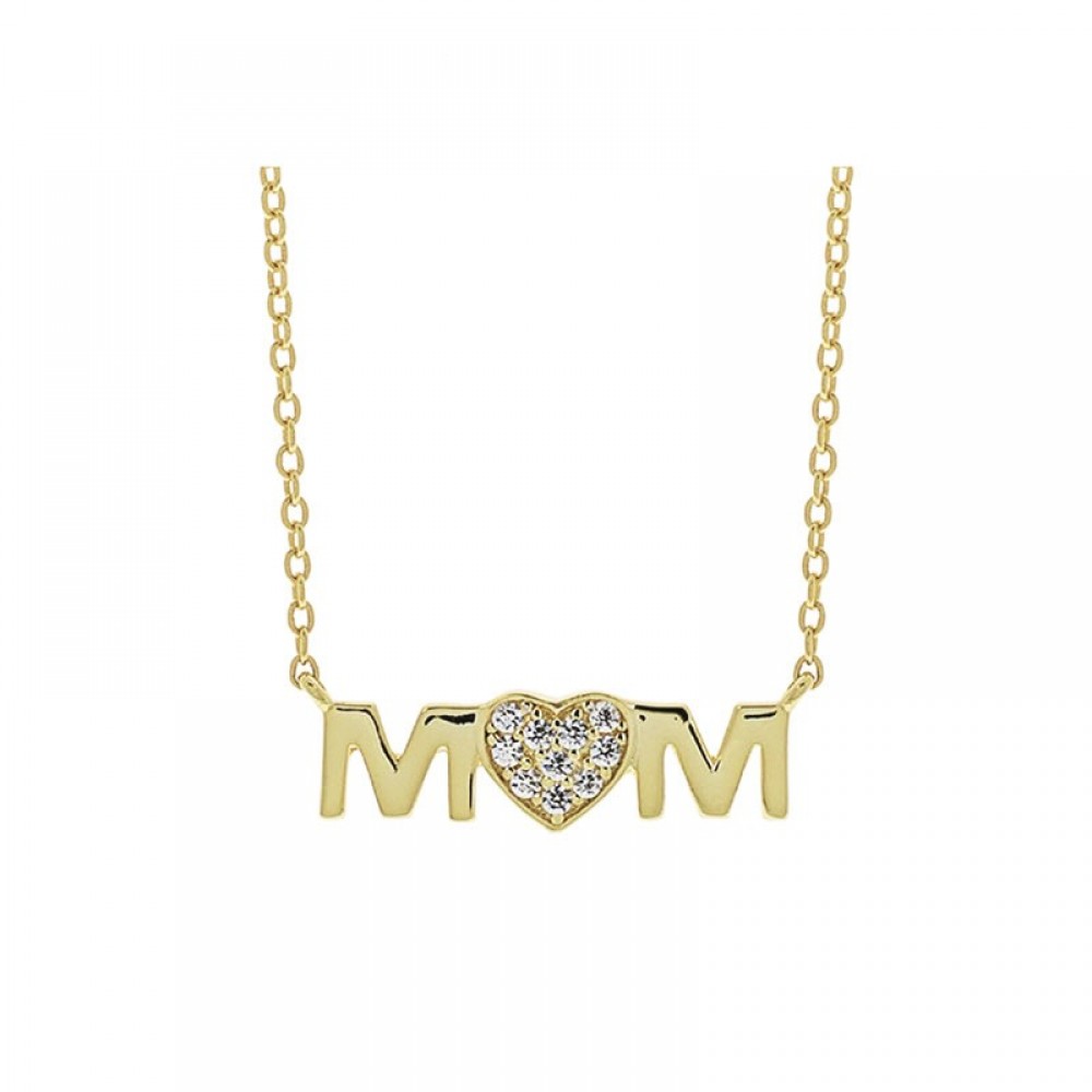 • Ασημένιο επίχρυσο κολιέ με τη λέξη "Mum" και καρδιά στο κέντρο