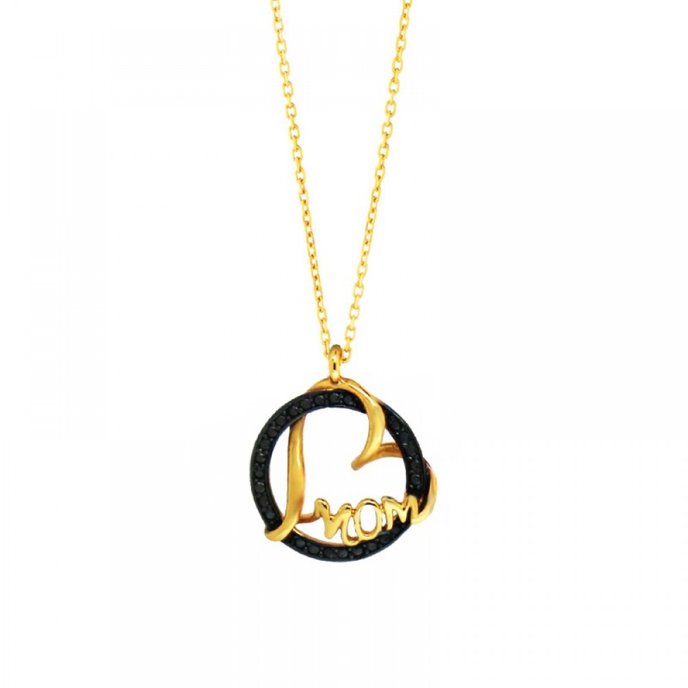 Ασημένιο με επιχρύσωση 24Κ κολιέ με κύκλο και καρδιά που γράφει "mom"