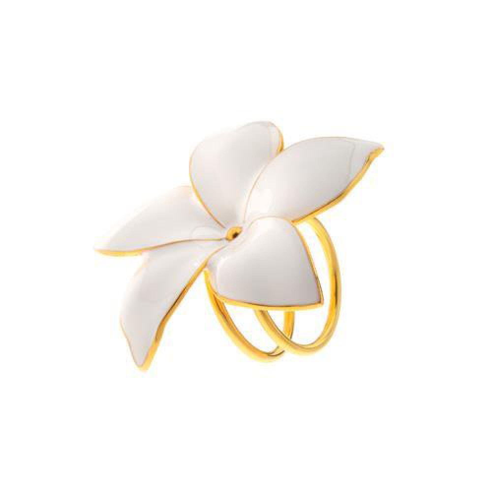 Ασημένιο επίχρυσο δαχτυλίδι με μεγάλο λουλούδι από λευκό σμάλτο