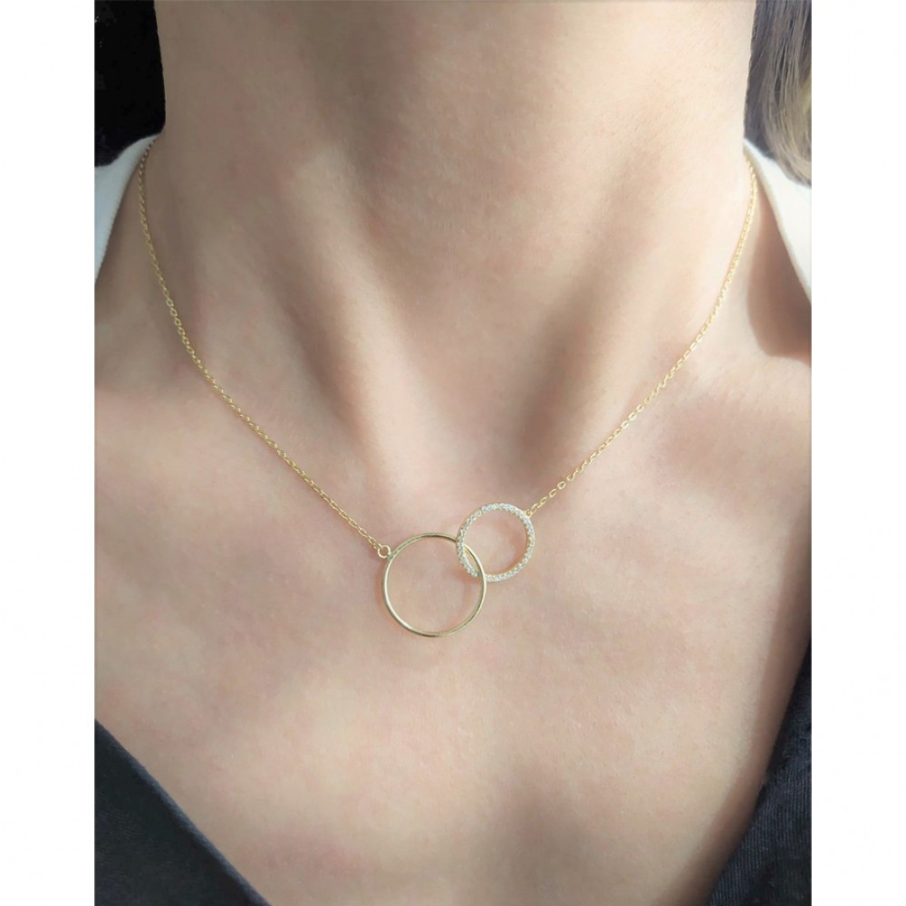 Ασημένιο με επιχρύσωση ροζ χρυσού κολιέ με δύο κύκλους ενωμένους