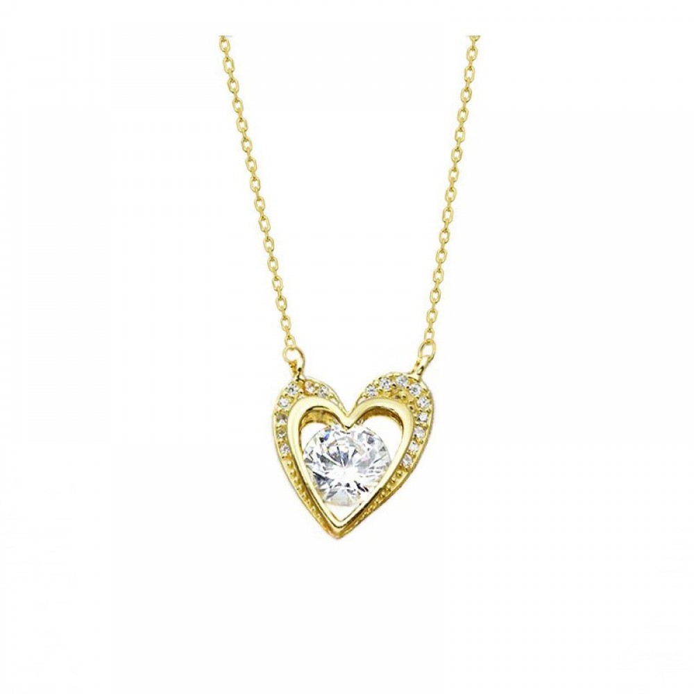 Ασημένιο επίχρυσο κολιέ με καρδιά διακοσμημένη με πέτρες ζιργκόν
