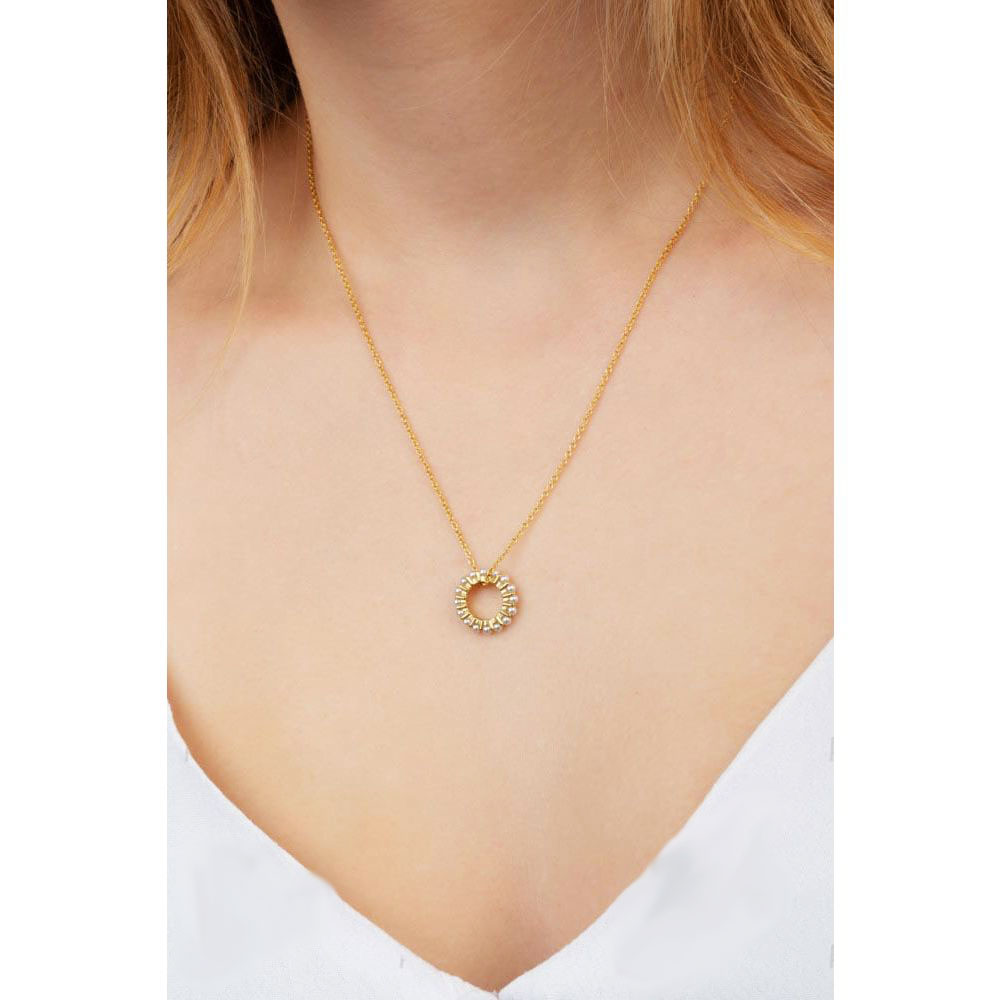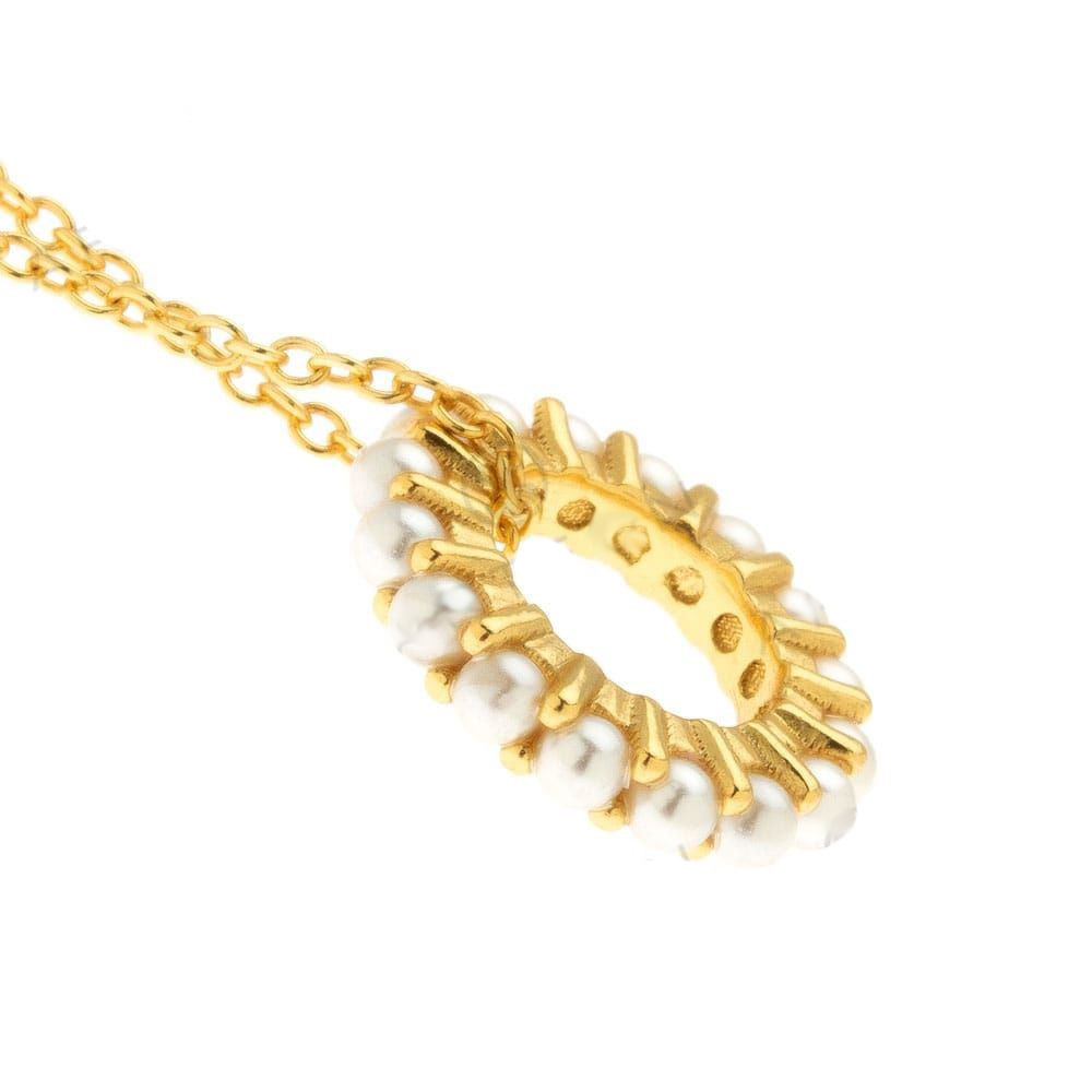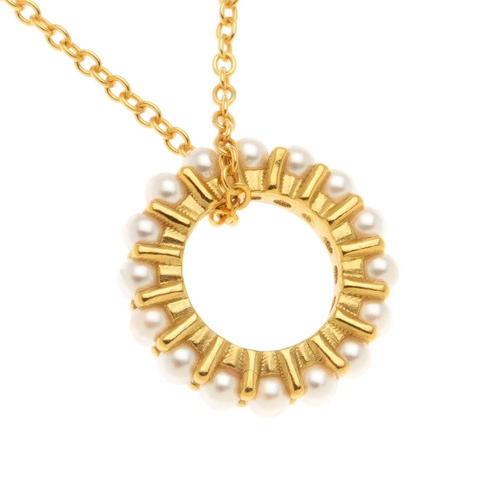 Ασημένιο και επιχρυσωμένο κολιέ - ροδέλα με μικρές λευκές πέρλες